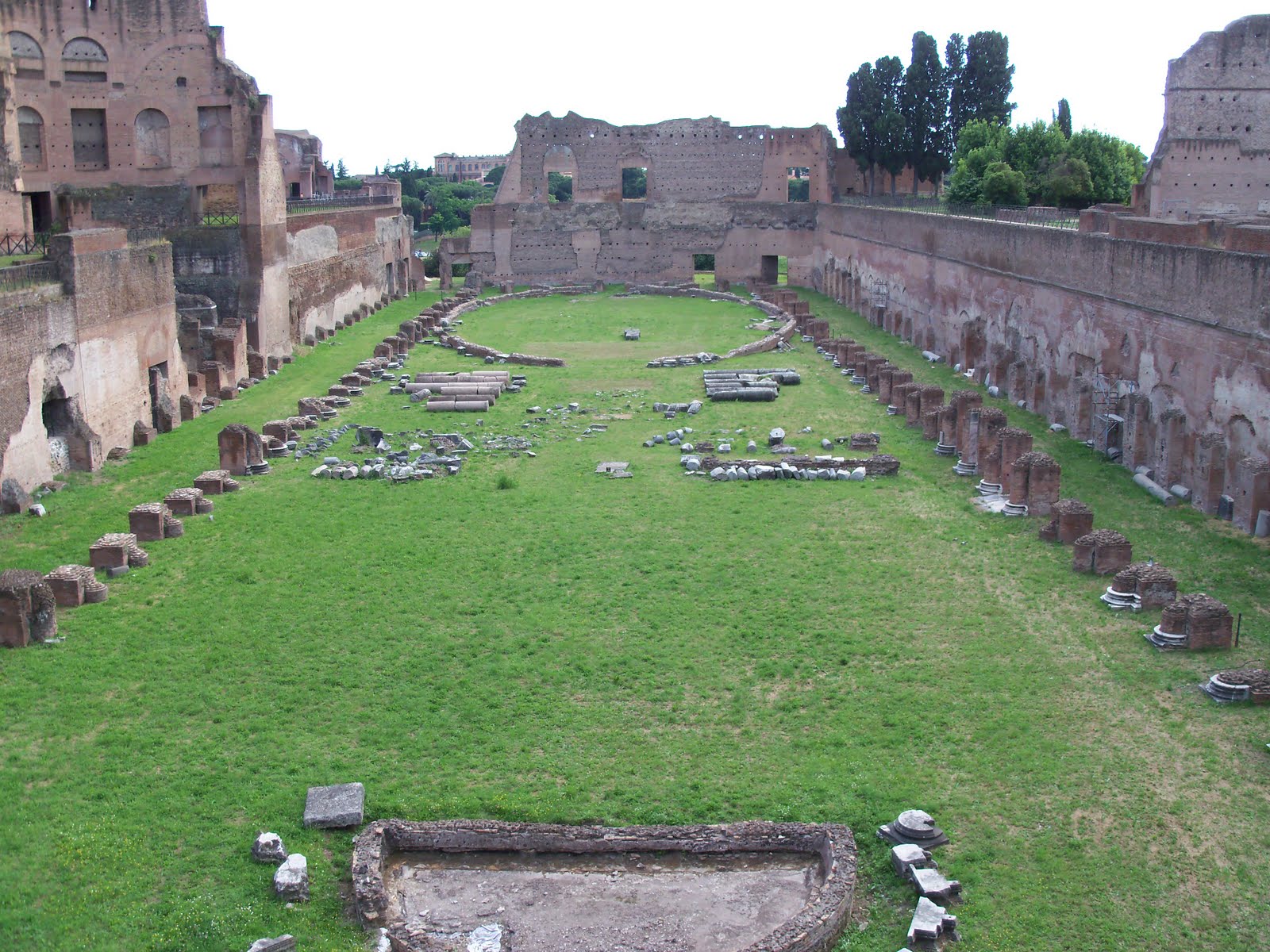 It doesn't look like much now, but imagine an stadium encircling the track you see here. 250,000 Romans would watch the chariot races that took place here, and the emperor had the best view of all :)